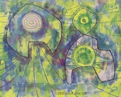 Organic, symbolic works that blend surreal forms with expressive postwar modern painting.