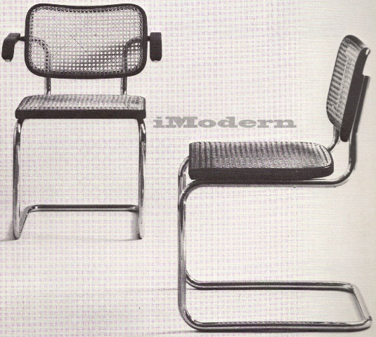 Other views of the Cesca chair showing the adaptation of the flow of line from the cantilever into the arm rests with only a small outward deflection of the steel tube.