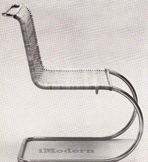 The idea of the continuous line of side support becoming the base element along the floor, had a very far-reaching influence. In fact we have seen so many similar uses of tubular steel that it is difficult to appreciate the sophistication of this beautiful chair.