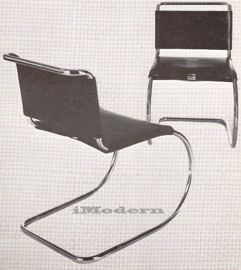 This chair was designed at the time of the earliest use of the cantilever principle for metal-frame chairs.