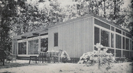 Instead, however, they turned to architect Conrad Green to design a summer cottage for them which would more adequately fill the space requirements but be sufficiently economical to compete in price with the prefabricated house; also they realized that a. custom-designed house would better satisfy the dictates of the site.