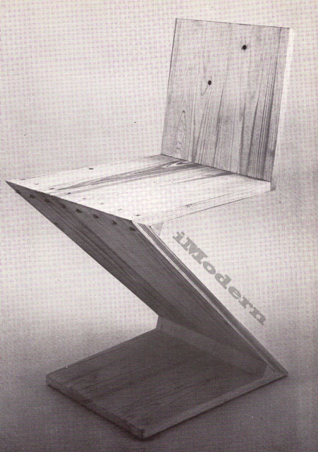 The formal quality of the object itself has also been profoundly influential. To design a chair after coming in contact with the Zig-zag, one is in a way forced to start from a new point of departure, with a new initial premise, and to consider each line, plane, support or elaboration of chair structure using much more stringent criteria.