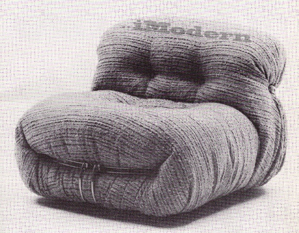 The Scarpa's have here produced something close to the ultimate alternative to traditional upholstery. Upholstered chairs used to be made by skilled craftsmen, working with layers of padding on a timber frame. The chair has a minimal wooden base, supporting the polyurethane foam of which the chair is made.